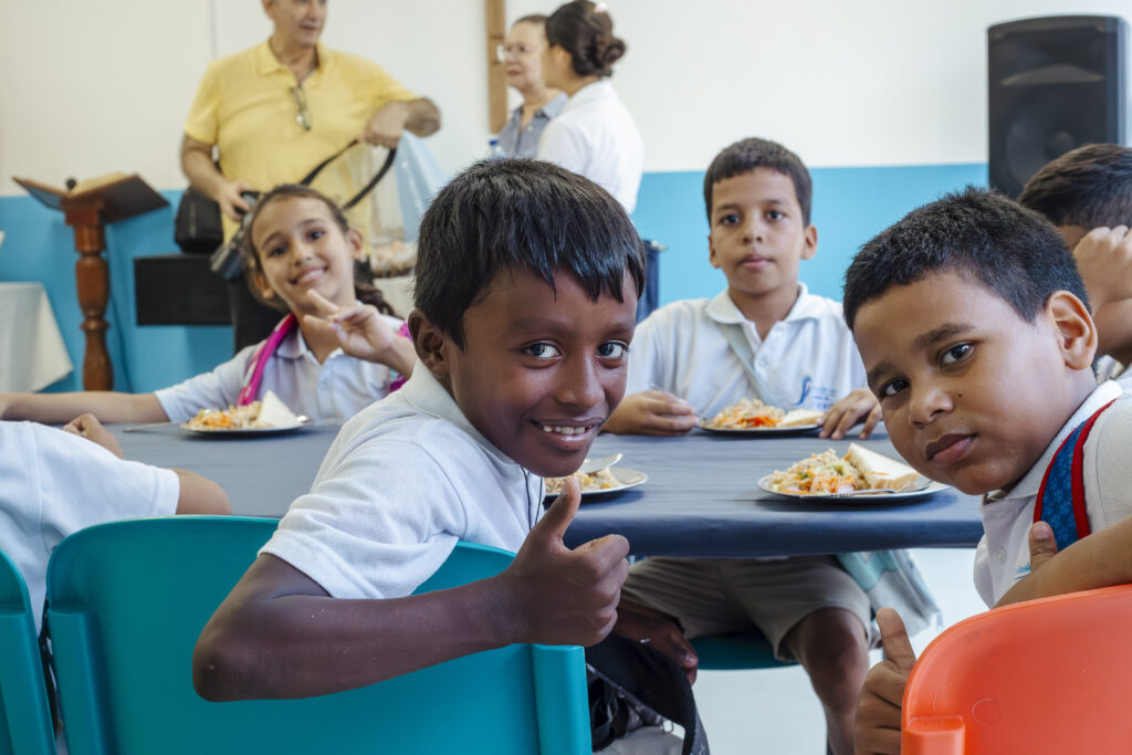 La Fundación sirvió desayunos y almuerzos balanceados de lunes a viernes en 2023 y 2024 para garantizar el desarrollo físico y la permanencia de los niños en sus programas, siendo, en muchos casos, su única alimentación diaria.